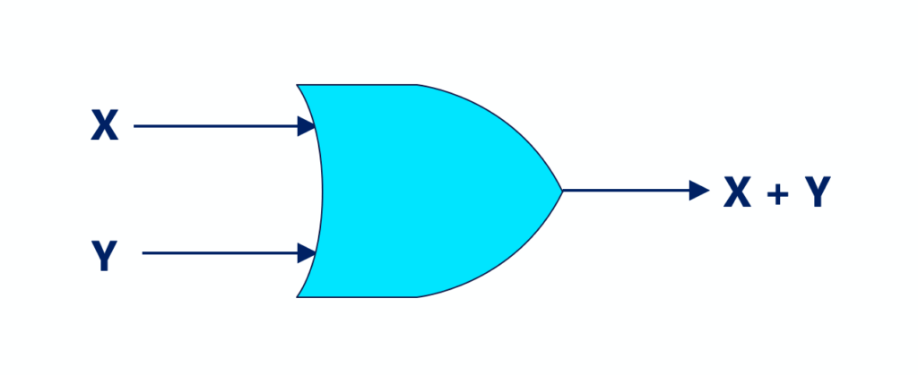 The ‘OR’ operation between two variables, say, x and y, is written as x + y.