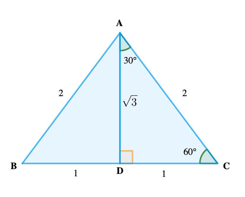 - tan 30° = \( \frac {1}{\sqrt {3}}\)
