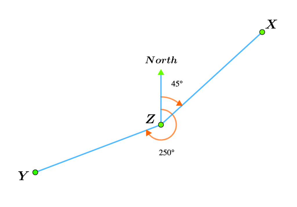 The angles are measured clockwise from the north line.